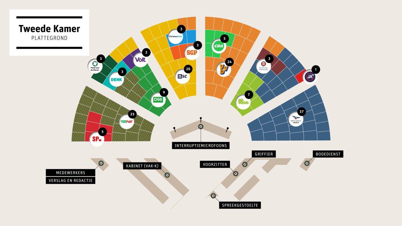| Plattegrond met zetelverdeling Tweede Kamer pdf. |